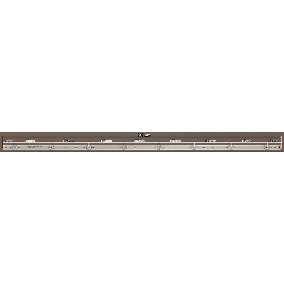 LED TRAKA 43" , ShineOn M08-BD43030-0801N-4007A , 846MM , 8 LED . DIODE 3V . UGRADJUJE SE U GRUNDIG TV . U KOMPLETU SE KORISTE TRI LED TRAKE POLT0539 .
